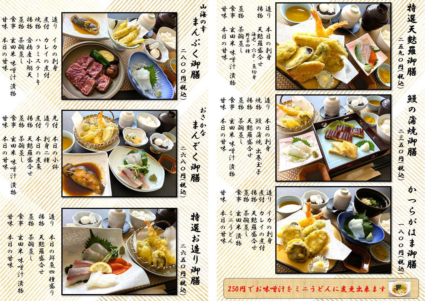 秋の新メニューのお知らせ wpmaster 新着情報 10月 8日 レストランかつらがはまでは、秋の新メニューをとり揃えました。 また、大人数に対応して、店内貸し切りのご要望にもお応えします。 ご家族や、親しいお友だち、大切なお仲間とのご宴会・ご会食にご利用ください。 Tweet