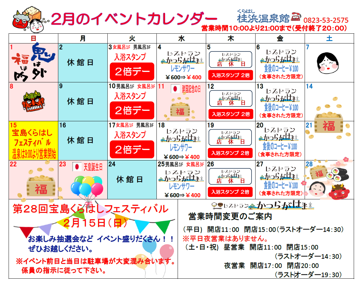 2月15日(日)は、毎年たくさんの笑顔で賑わう「第28回 宝島くらはしフェスティバル」が開催されます!