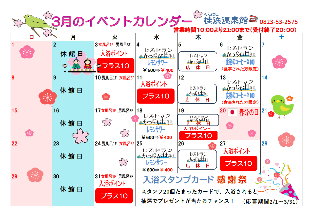 3月のイベントカレンダーです。
